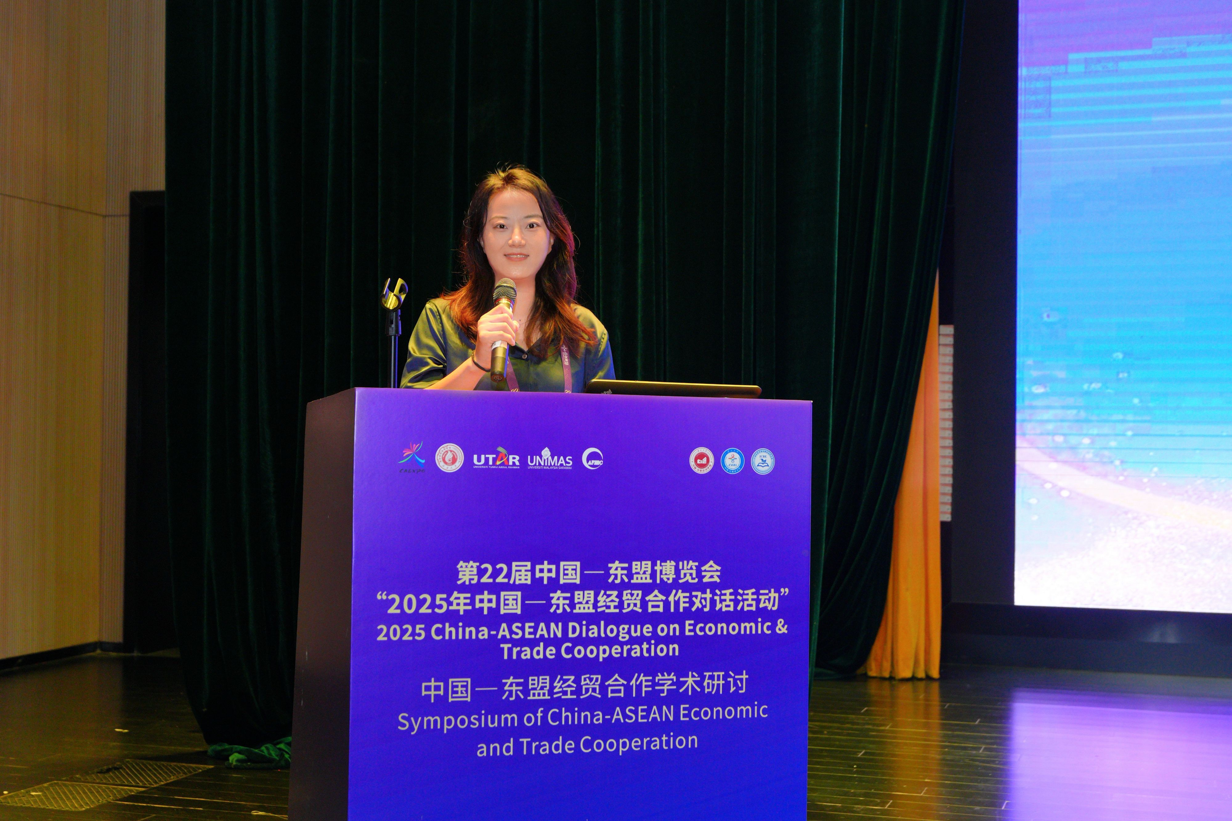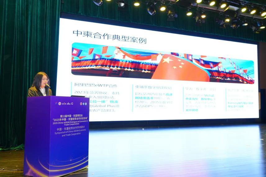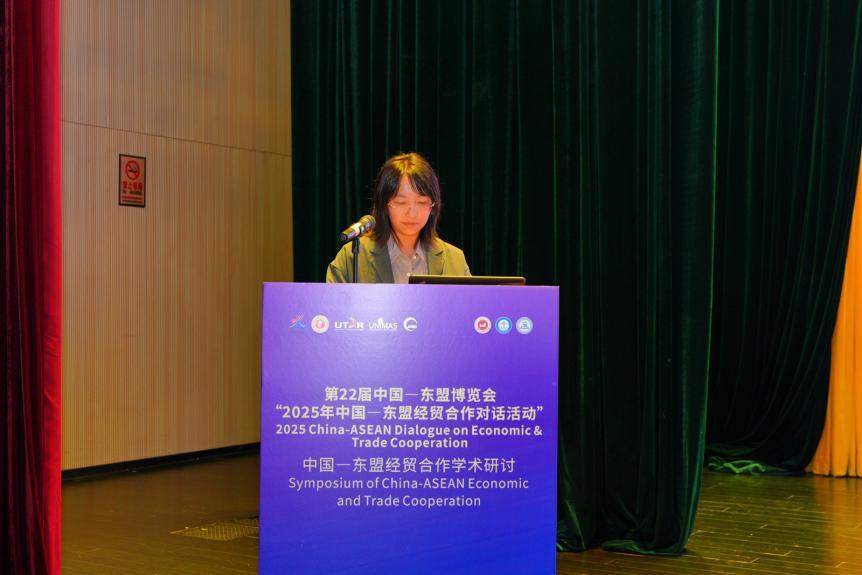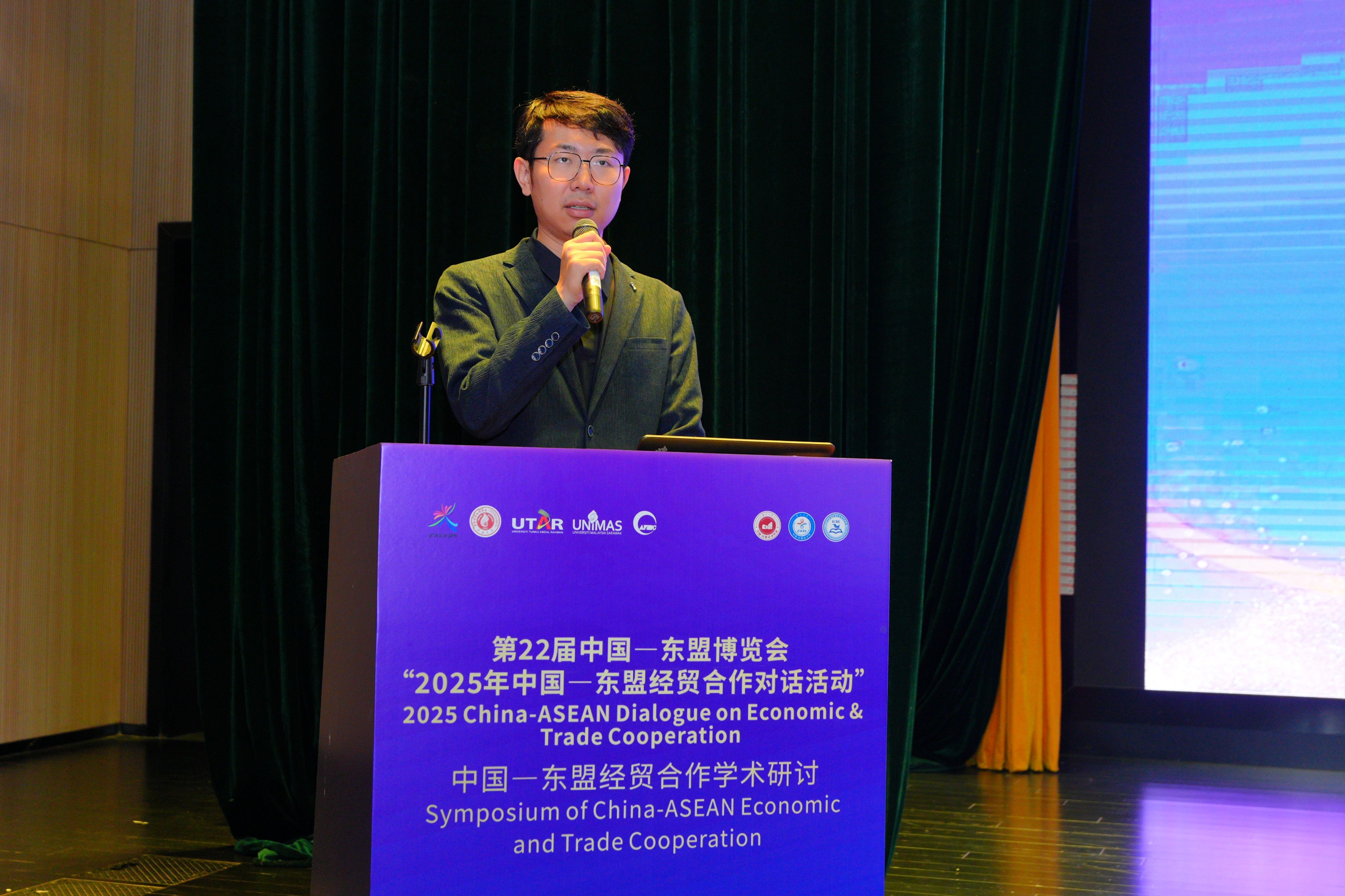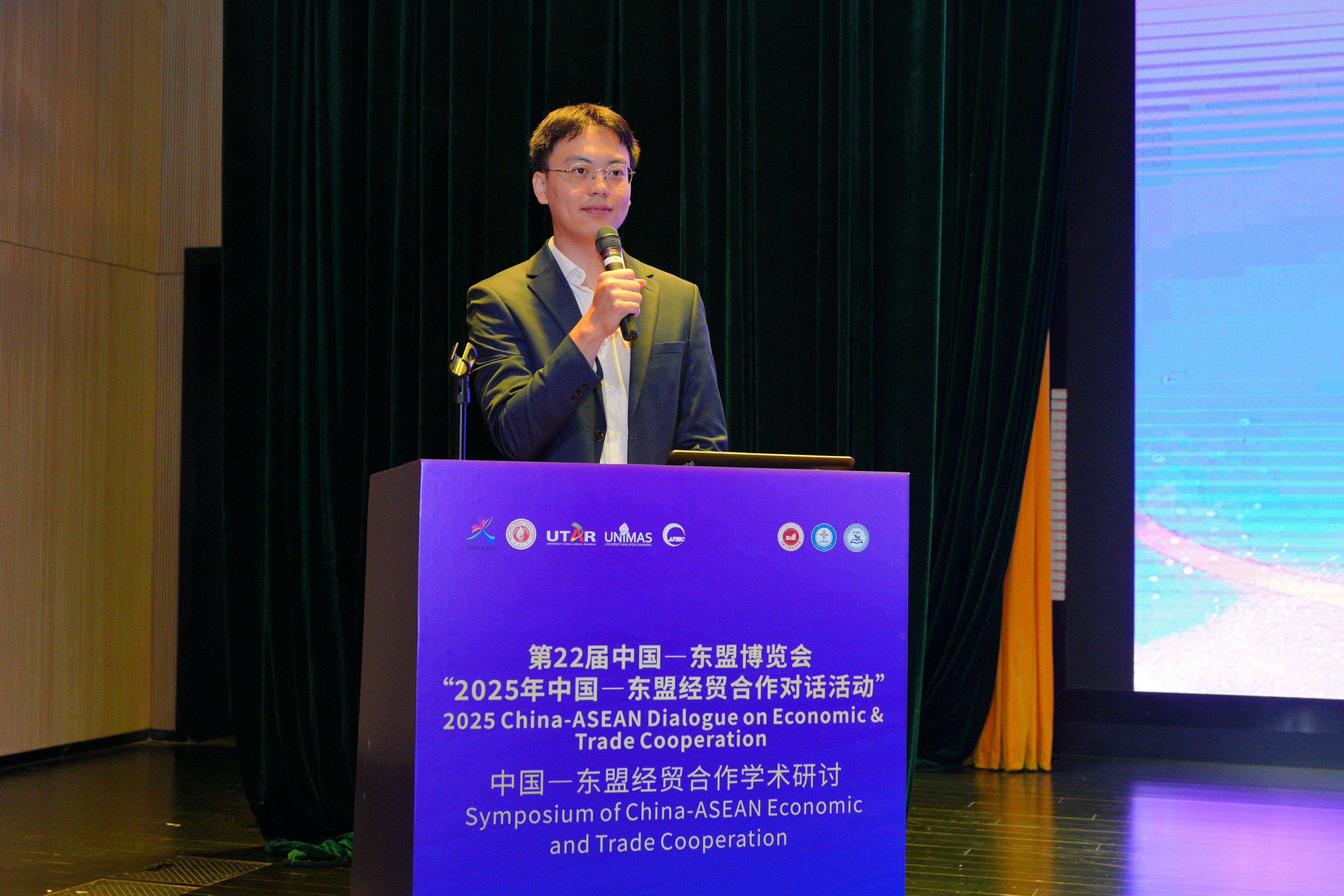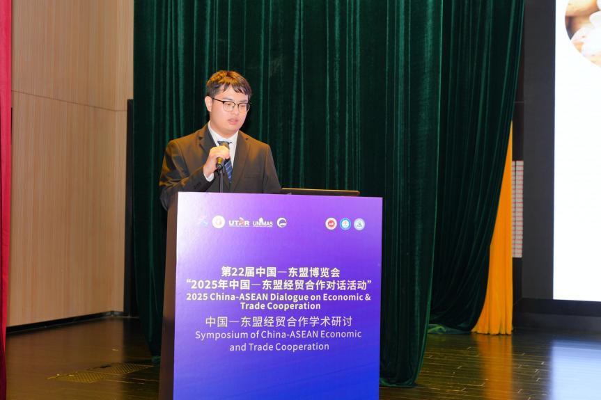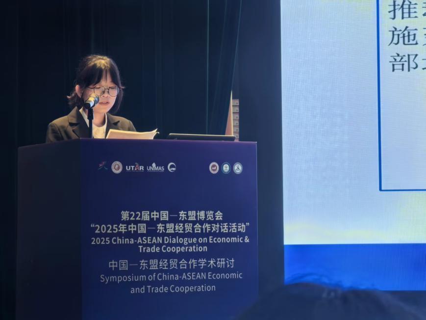 院长助理、副教授刘骞文主持了学术报告环节。交流中,多位青年学者和研究人员就亚太区域经济合作、中国—东盟跨境电商、金融科技与绿色供应链等议题发表研究成果,从多维度探讨中国与东盟在新形势下的合作路径与发展机遇。