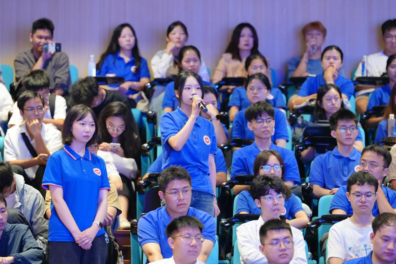 在问答环节,现场师生踊跃提问,气氛热烈。2025级应用经济学硕士研究生胡秀慧等同学积极与专家互动,两位教授分别作出细致而深入的解答,思维碰撞中不断掀起交流高潮。