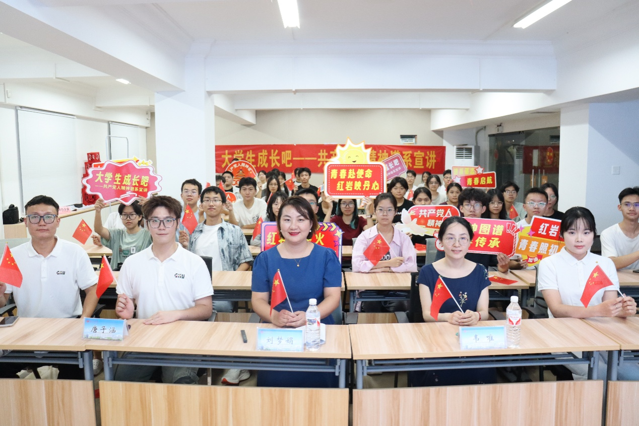 为深入学习宣传贯彻习近平新时代中国特色社会主义思想,10月10日,中国—东盟经济学院在西21栋“一站式”学生社区16号活动室开展第二期“大学生成长吧——共产党人精神谱系宣讲”活动,助力学子坚定理想信念、勇担青春使命。中国—东盟经济学院/经济学院/中国—东盟金融合作学院党委副书记刘梦娟老师、学生工作部(处)韦唯老师与学生代表50余人参与此次活动,活动由辅导员郭霖刚主持。