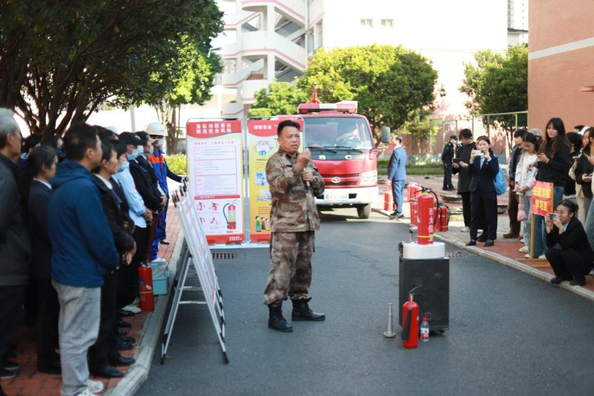 在消防安全教育环节,消防安全负责人结合过往典型火灾案例,阐释了火灾的严重危害,以理论与实例相结合的方式,向在场师生详细讲解了常见灭火器、消防水带的正确使用方法,系统普及了火灾日常预防要点、现场逃生技巧及自救核心知识。