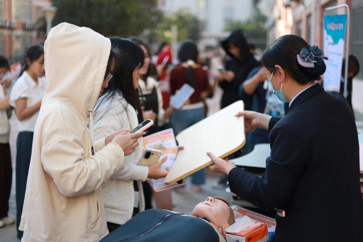 随后,师生们在通风空地上开展了灭火器实操演练,消防安全员现场演示操作规范与关键技巧,师生们积极参与、认真练习,圆满完成实操任务。活动最后,参与演练的同学通过消防安全知识答题,领取了消防安全纪念品。