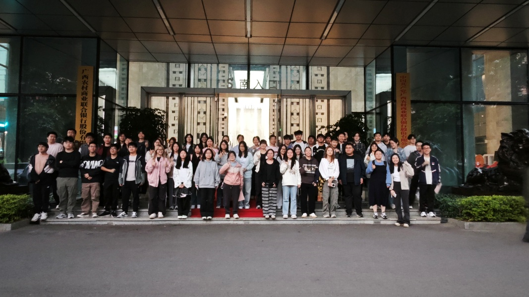 图1:同学们于广西农商联合银行总部大楼门前合影