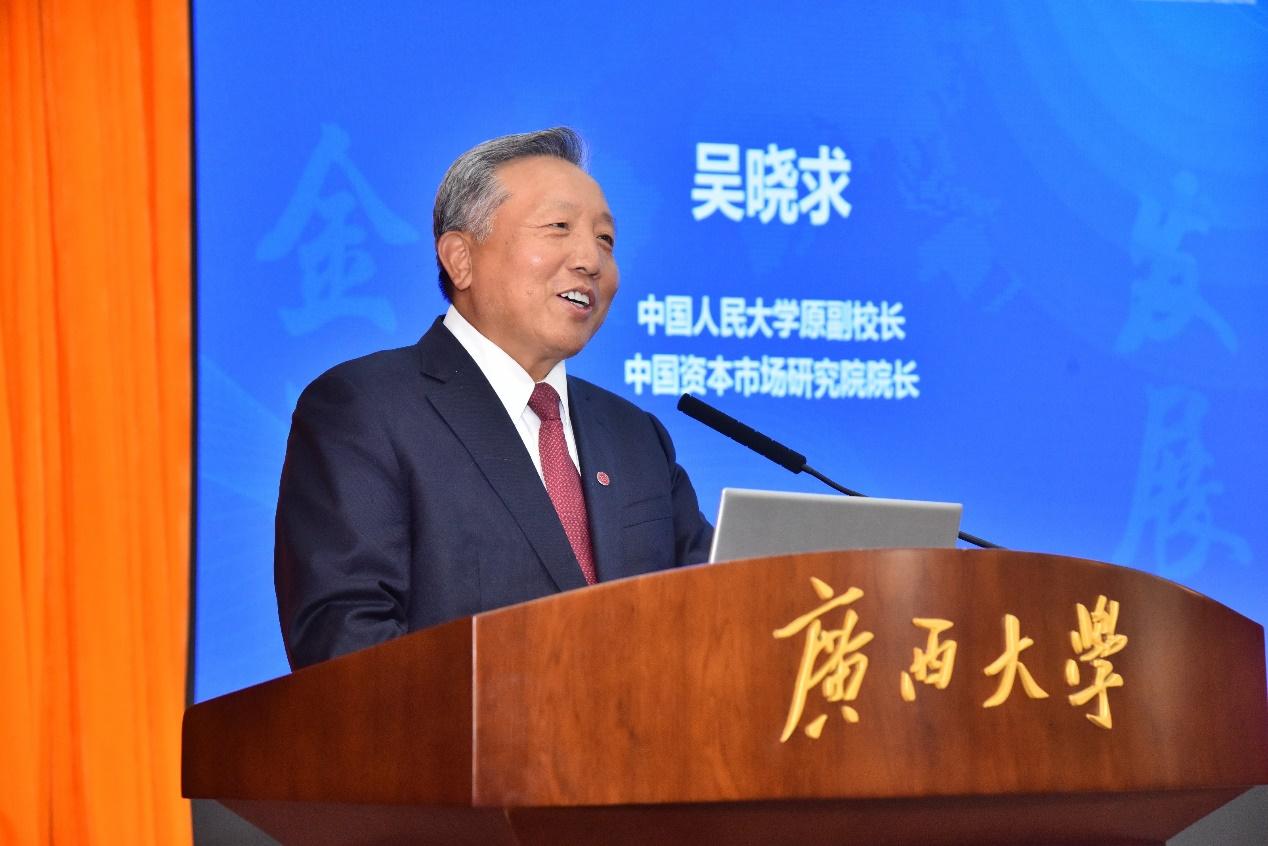 2月24日下午举行的学科发展论坛包括开幕式、主题发言及5个分论坛。广西大学副校长田利辉,清华大学经济管理学院院长白重恩(线上参会)分别在开幕式上致辞。中国人民大学原副校长、中国资本市场研究院院长吴晓求发表了题为《尊重人类文明优秀成果是知识创新的起点》的主题演讲,认为在构建中国自主经济学和金融学的知识体系的时候需要高度关注以下三点:一是要对学科有敬畏之心;二是要注意对常识的尊重;三是对趋势的顺应。
